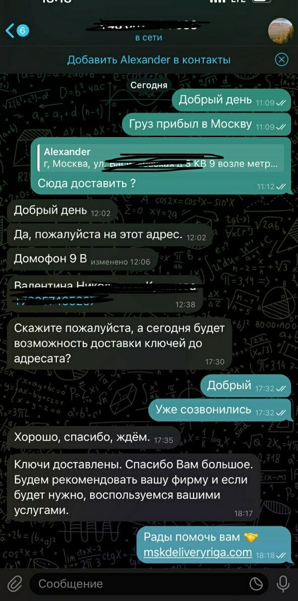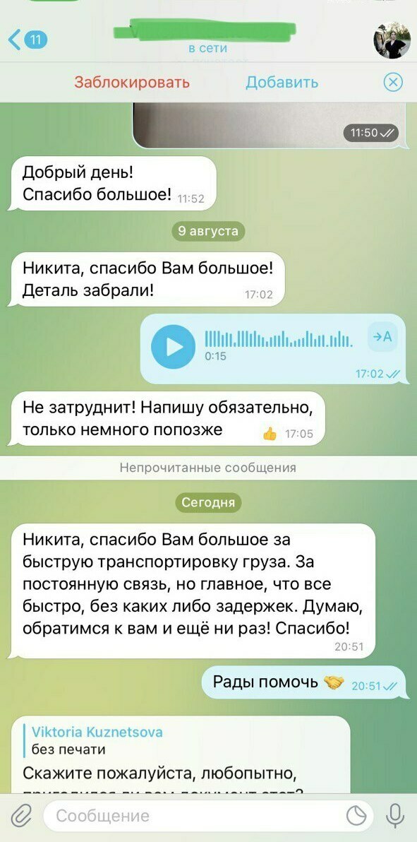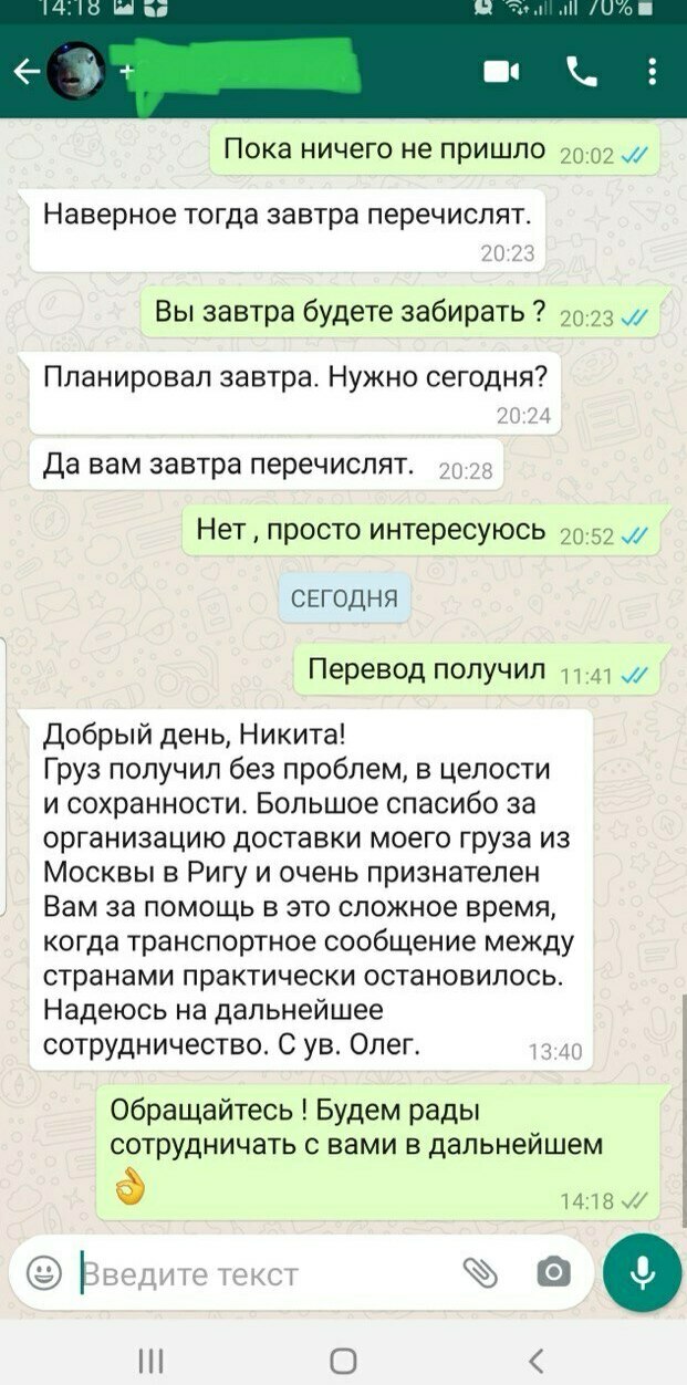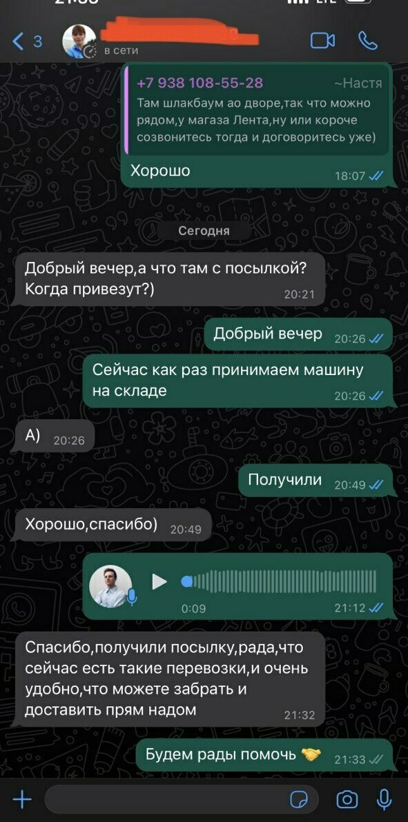 - Мы обязательно обмениваемся контактами с тем, кто будет получать груз для того, чтобы иметь возможность быстрой связи и при необходимости еще раз убедиться, когда и кому будет доставка.