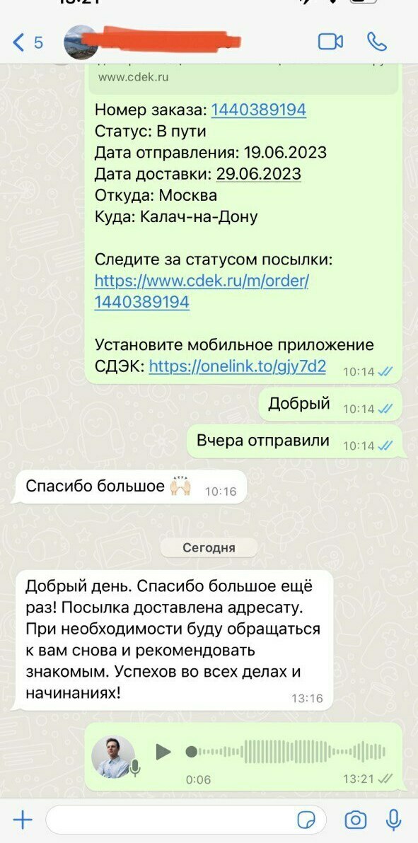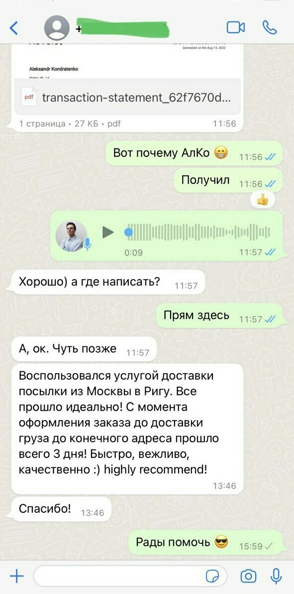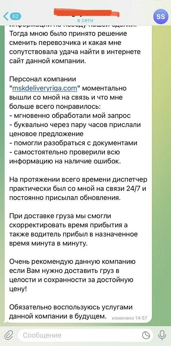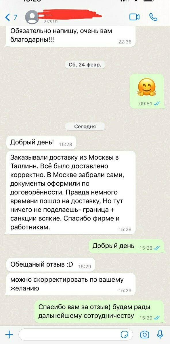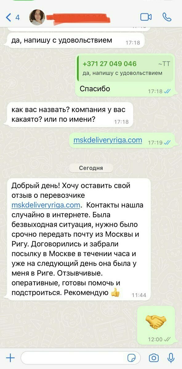 - Мы обязательно обмениваемся контактами с тем, кто будет получать груз для того, чтобы иметь возможность быстрой связи и при необходимости еще раз убедиться, когда и кому будет доставка.