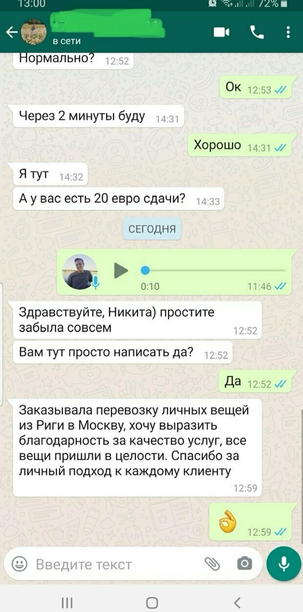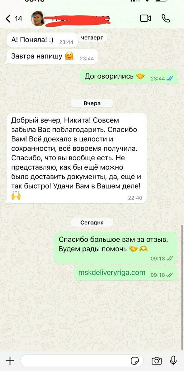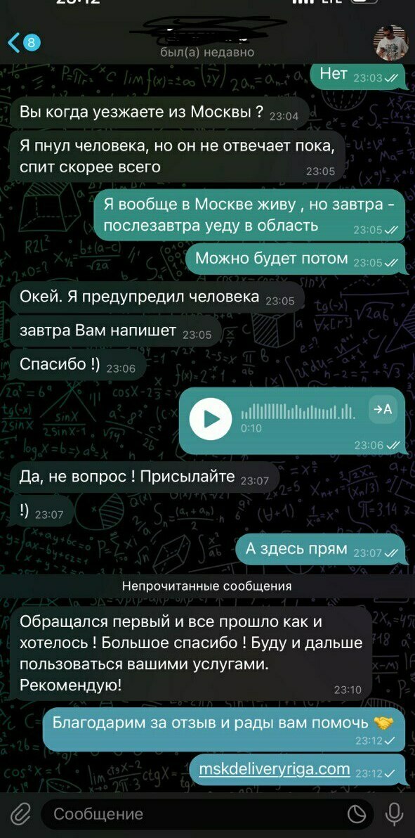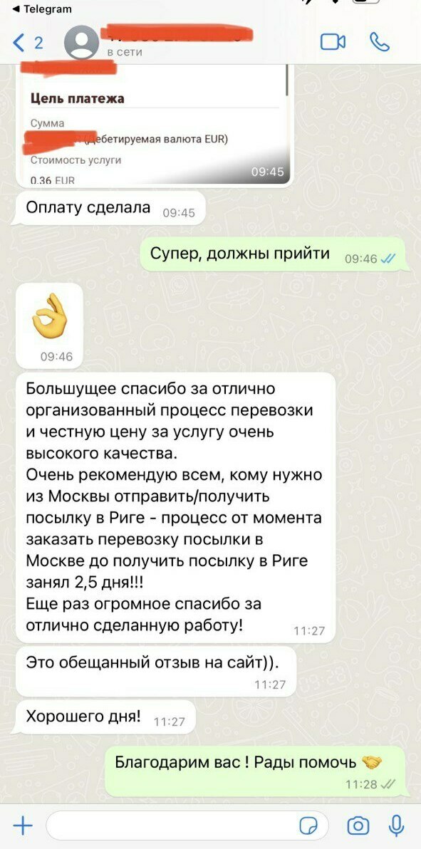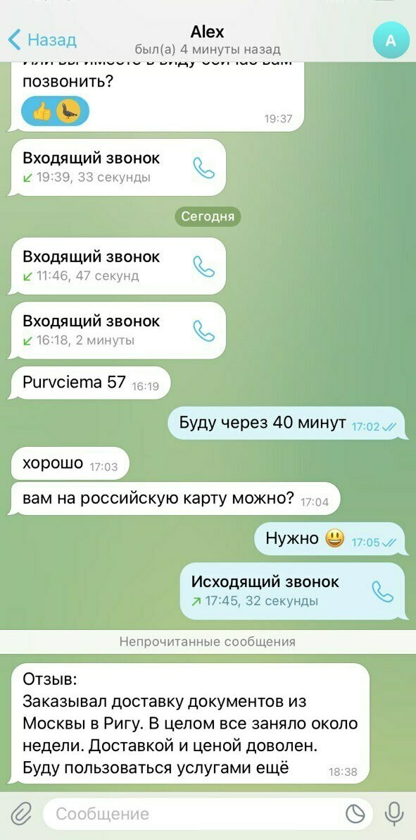 Перед тем как прибыть в Ригу, мы предупредим получателя за 1 час до приезда