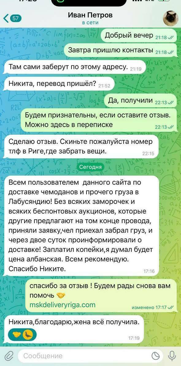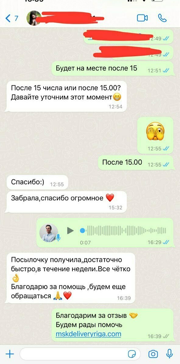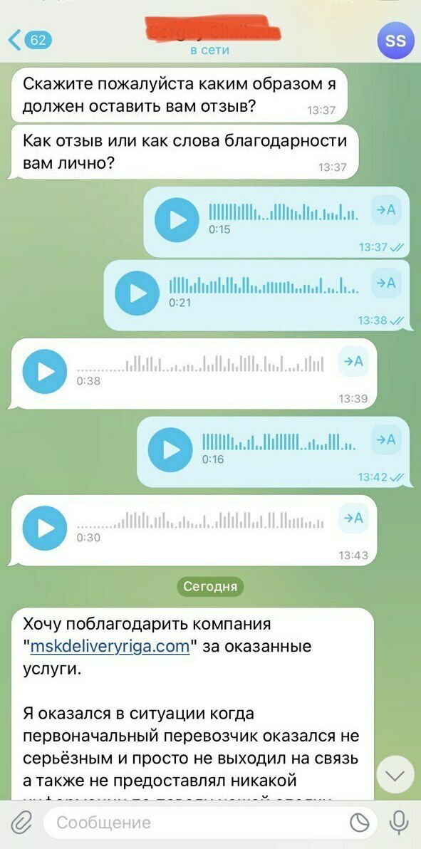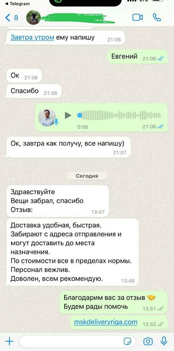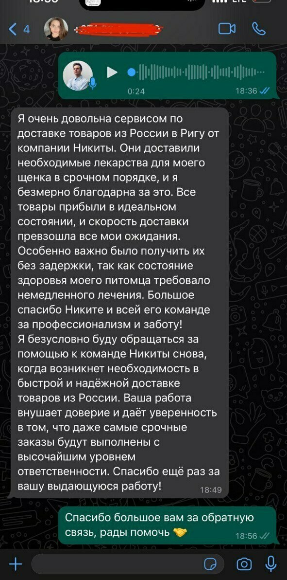 Перед тем как прибыть в Ригу, мы предупредим получателя за 1 час до приезда